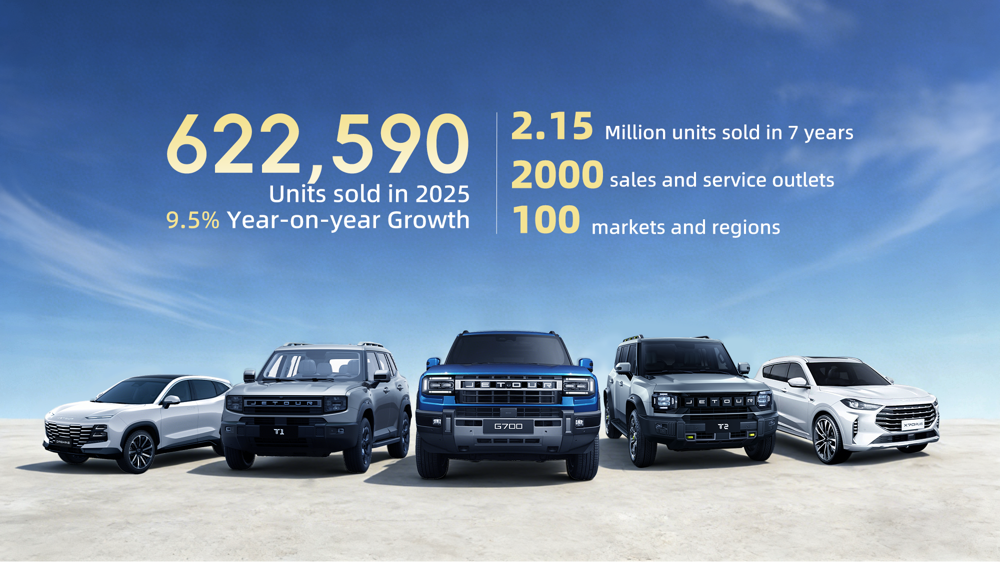 En 2025, las ventas globales de JETOUR alcanzaron las 622.590 unidades, un aumento interanual del 9.5 %, estableciendo un nuevo récord anual