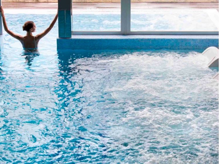 El viaje sensorial continúa con una propuesta gastronómica basada en sabores frescos y mediterráneos, con desayuno y cena incluidos, pensados para comenzar y cerrar el día disfrutando de la cocina local. El corazón de la experiencia se encuentra en el Blue Spa, donde los huéspedes pueden disfrutar de un circuito hidrotermal de 90 minutos diseñado para equilibrar cuerpo y mente que se completa con una zona de calor con terma romana, sauna finlandesa y baño turco.