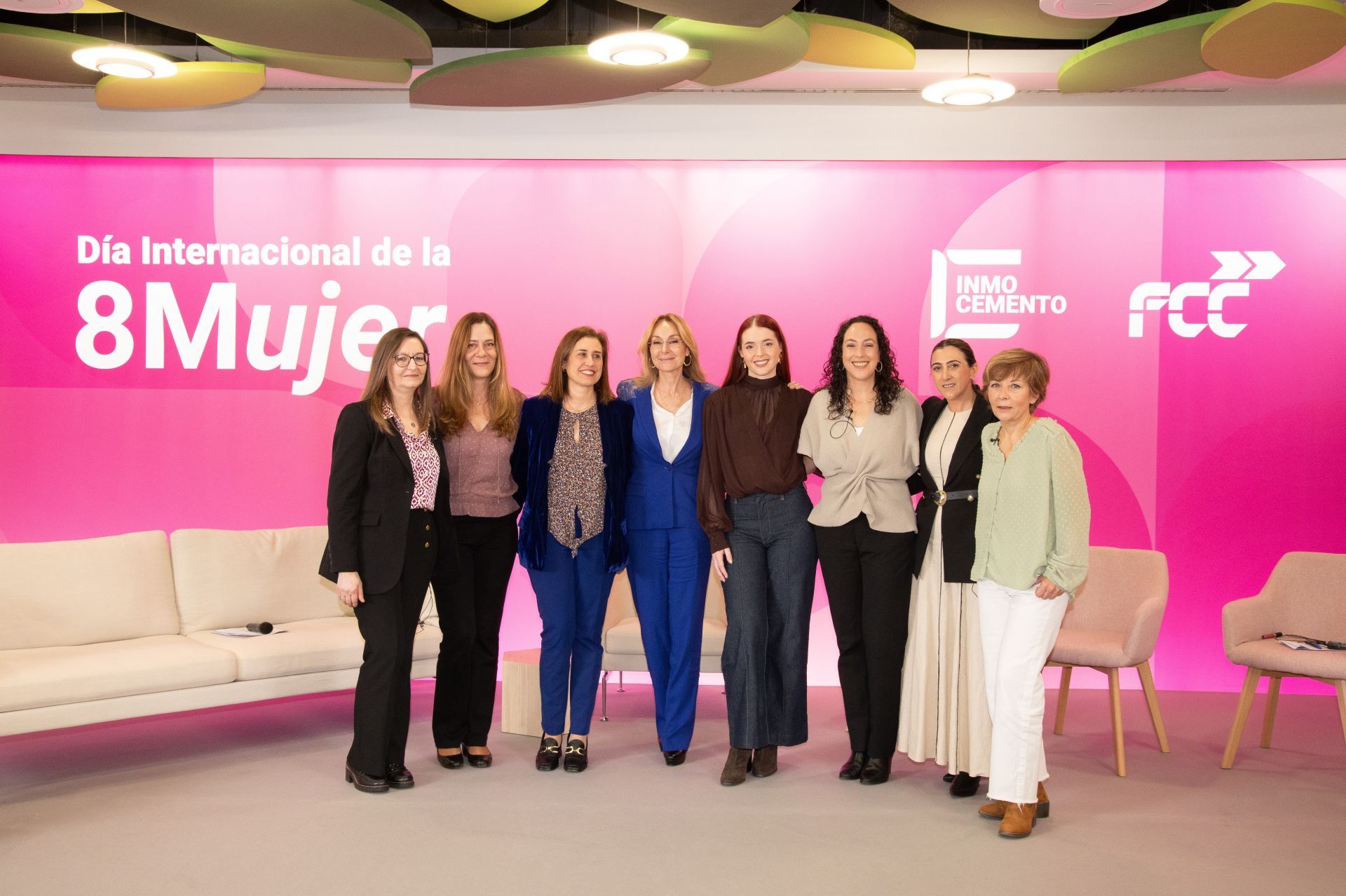 El acto se ha realizado en torno a una mesa redonda, bajo el título «Hablando de igualdad», en la que han participado Celia Parrilla Salcedo, arquitecta Técnica de Servicios Generales de FCC; Izaskun Vázquez Larrea, jefa de Producción de la Delegación de Guipúzcoa-Navarra de FCC Medio Ambiente; Ana Colón Guerrero, jefa de Departamento de Control y Logística de Clientes de Aqualia; María Jesús Mora Huelves, técnica Administrativa de Control de Gestión y presidenta del Comité de Empresa de Servicios Centrales Madrid en FCC Construcción; Alicia Morante Muñoz, gerente de Recursos Humanos de FCC Concesiones; Raquel Álvarez Santos, técnica de Medio Ambiente de la Fábrica de El Alto de Cementos Portland Valderrivas; y María Belén Valero Gómez, directora de la Delegación Centro II de Realia.